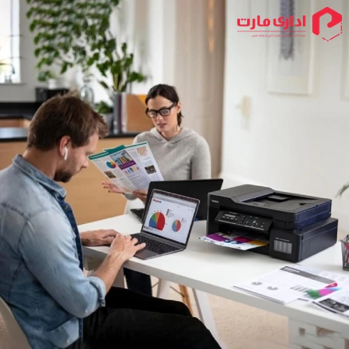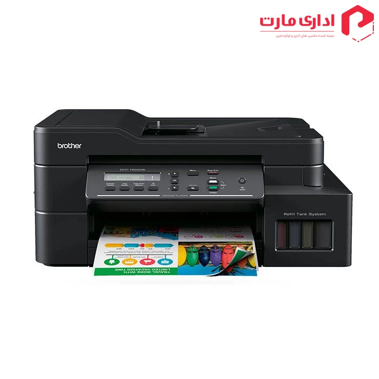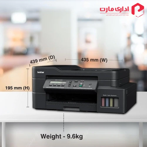 چاپگر مخزن جوهر پرکننده همه کاره برادر DCP-T820DW با Wi-Fi و چاپ دوطرفه خودکار.چاپگر مخزن جوهر Brother یک راه حل همه کاره لوازم التحریر و لوازم اداری است که کیفیت چاپ فوق العاده ای را تا رزولوشن ۱۲۰۰×۶۰۰۰ dpi ارائه می دهد.وزن این چاپگر ۹.۶ کیلوگرم و ابعاد 309x195x435 میلی متر است.سطح نویز آن ۵۳.۵ دسی بل (A) است و خروجی آن رنگی است.
