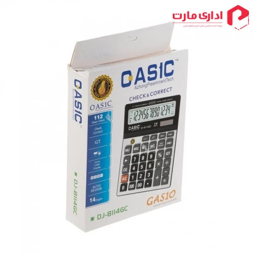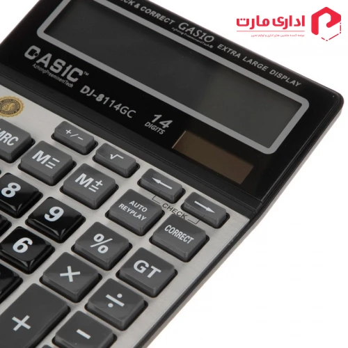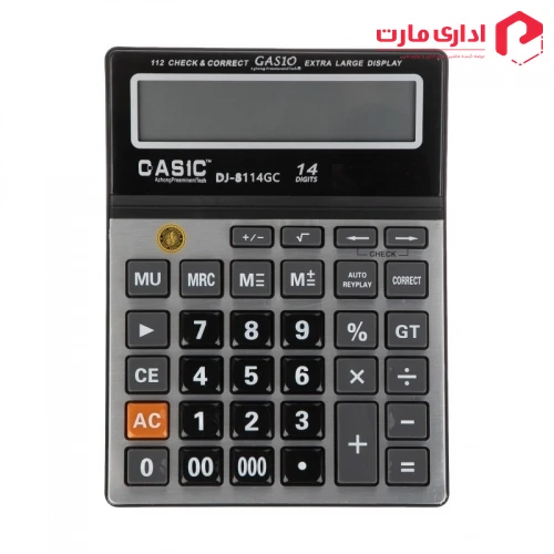 ماشین حساب مدل (DJ-8114GC) یکی از جدیدترین ماشین حساب های نوع رومیزی برند معتبر کاسیو (Casio) به شمار می رود که از ساختار ظاهری زیبا و کارآمد به ابعاد (195x150x55) میلی متر و ۲۴۵ گرم وزن برخوردار بوده و به نمایشگر تک خطی با کیفیت جهت نمایش محاسبات مجهز می باشد، این ماشین حساب در اصطلاح ۱۴ کاراکتری بوده و تا ۱۴ رقم می تواند محاسبات مورد انجام گرفته شما را به نمایش بگذارد.