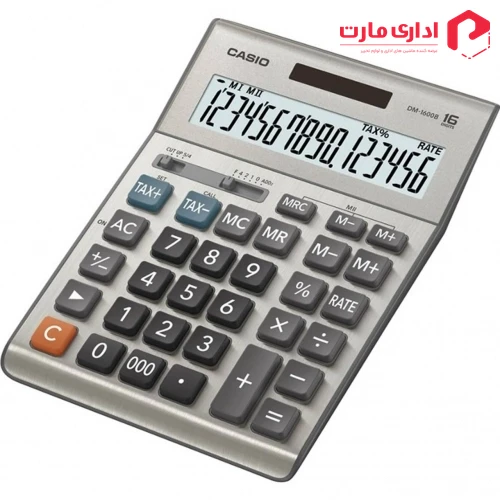 ماشین حساب (DM-1600B) کاسیو ماشین حسابی کاربردی و رومیزی با قابلیت های مناسب است که با ساختاری کاربردی در ابعاد (۲۰۹*۱۵۵*۳۶) میلی متر طراحی و تولید شده است، صفحه نمایش بزرگ به کاررفته در این مدل با قابلیت نمایش ۱۶ عدد بسیار خوانا بوده و کاربر میتواند با قرار دادن آن بر روی میز به آسانی از آن استفاده کند.