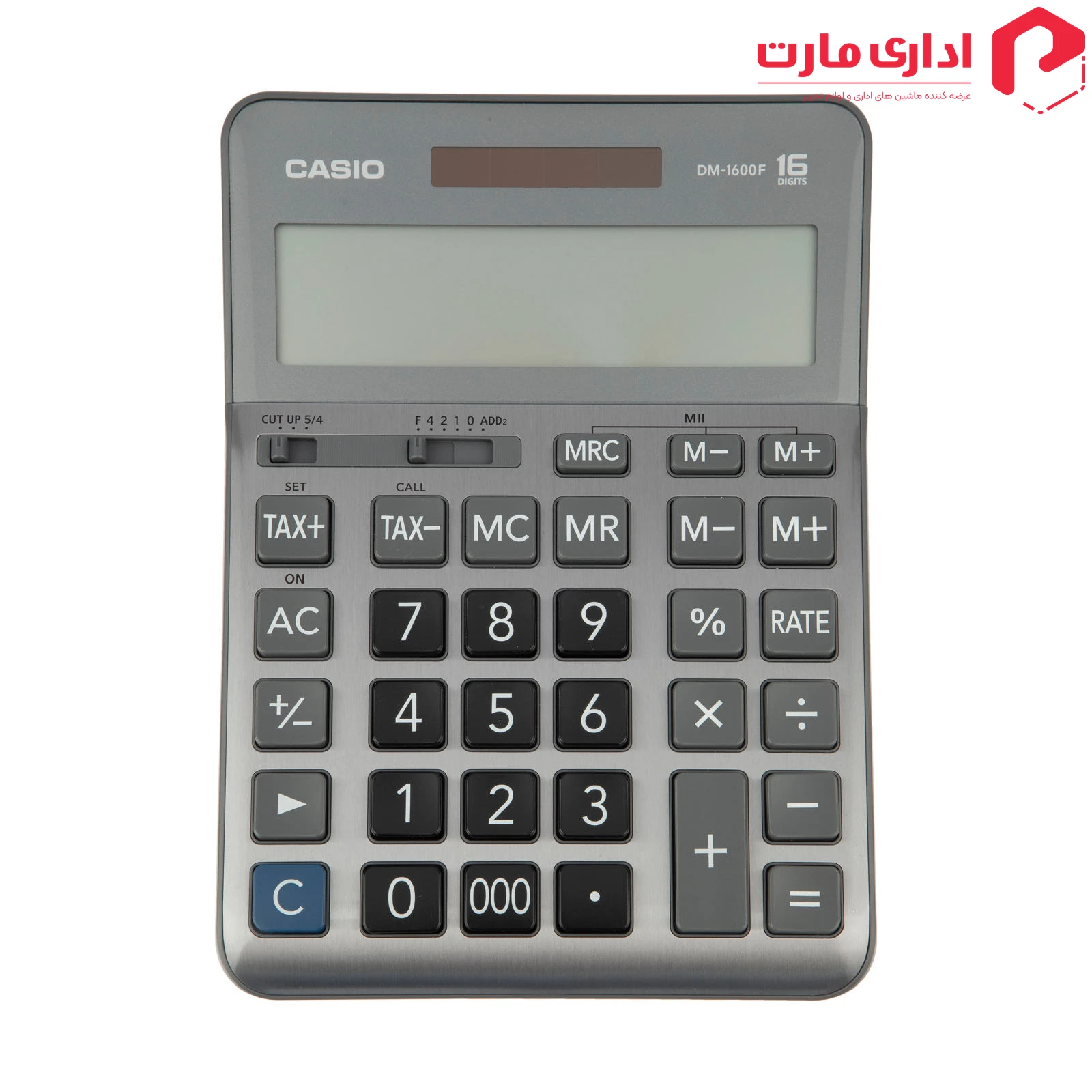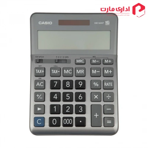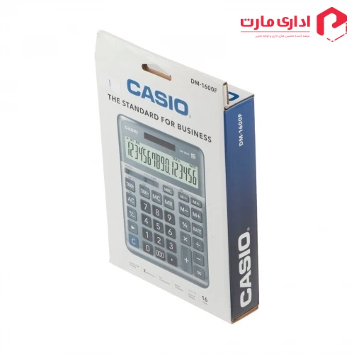 ماشین حساب مدل (DM-1600F) به ابعاد (۱۵×۳۵×۲۱۰) میلی متر و تنها با ۲۵۰ گرم وزن از سری محصولات با کیفیت برند معتبر کاسیو به شمار می رود و از آنجایی که به صورت رومیزی طراحی شده برای مصارف حسابداری دفتری و اداری گزینه مناسبی محسوب می شود.