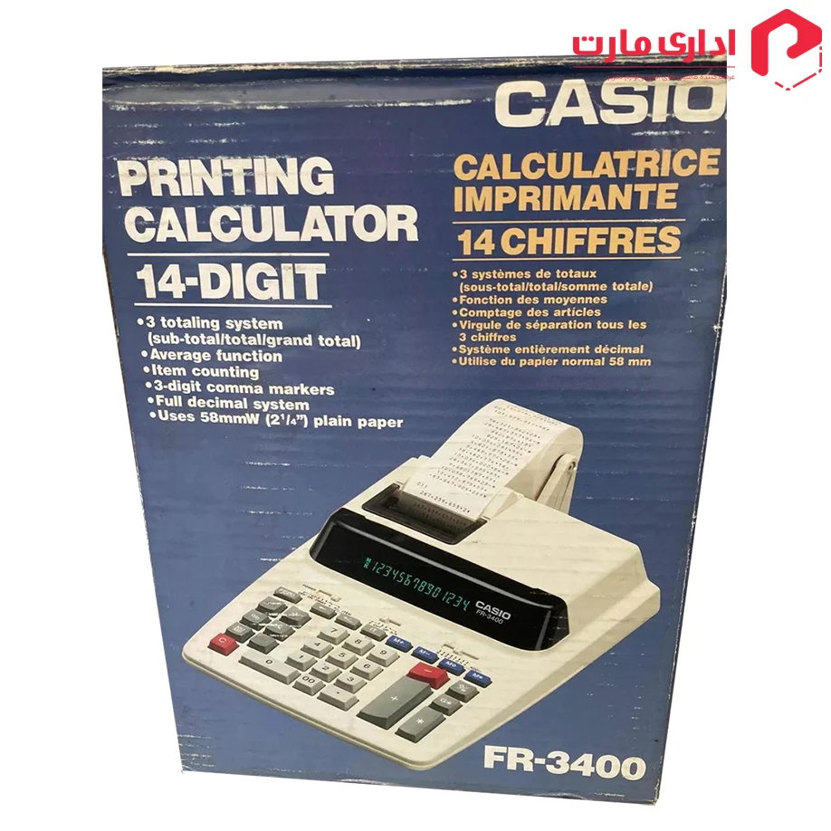 ماشین حساب با چاپگر کاسیو مدل (FR-3400) یکی از بروزترین محصولات تولید شده توسط کمپانی ژاپنی کاسیوست که همانطورکه از عنوانش مشخص است علاوه بر عملیات محاسبات مالی موردنظر شما می تواند فرآیند محاسبات را نیز بر روی کاغذهای با عرض ۵۸ میلی متر چاپ کند، همچنین این ماشین حساب با ساختار ظاهری به ابعاد (395x210x67) میلی متر و با ۱.۴ کیلوگرم وزن بعنوان یک ماشین حساب مجهز به چاپگر از فرآیند چاپ تک رنگ با سرعت ۴.۳ خط در ثانیه برخوردار بوده و مجهز به نمایشگری با قابلیت نمایش محاسبات تا ۱۴ کاراکتر نیز می باشد.
