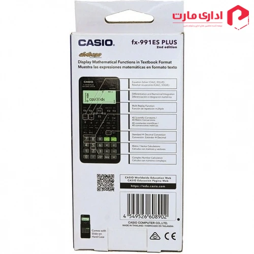 ماشین حساب مهندسی کاسیو مدل (fx-991ES plus 2nd edition) دارای ۴۱۷ تابع و عملکرد مختلف از جمله مثلثات، آمار، جبر، اعداد مختلط، لگاریتم و محاسبات مبنای مختلف، انتگرال و دیفرانسیل، انواع جایگشت و ترکیب، رگرسیون، میانگین، دستگاه مختصات، تبدیل واحد، بردار و ماتریس چند در چند ، حل معادله چند درجه و دستگاه معادلات و… می باشد، علاوه بر این نمایش طبیعی نوشتار به شیوه کتب درسی و صفحه آن دارای تکنولوژی ماتریس نقطه ای کامل بوده و درای قابلیت تنظیم نور صفحه نیز می باشد.
