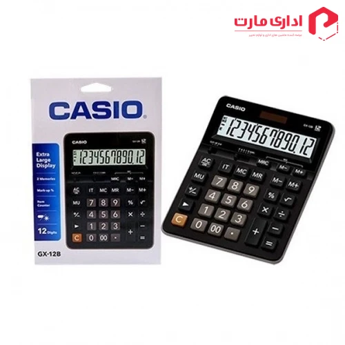 ماشین حساب (GX-12B) کاسیو با مشخصاتی به ابعاد (۳۰×۱۴۰×۲۰۰) میلی متر و ۲۲۵ گرم وزن، یکی از مدلهای دیگر رومیزی این شرکت است که برای استفادههای محاسباتی روزمره مناسب است، این ماشینحساب رومیزی را که از امکانات محاسباتی پایهای برخوردار است، میتوان در فروشگاهها استفاده قرار کرد، صفحهنمایش این ماشینحساب قادر است تا ۱۲ کاراکتر را نمایش دهد که باتوجه به رومیزیبودن آن بسیار مناسب و کاربردی می باشد.