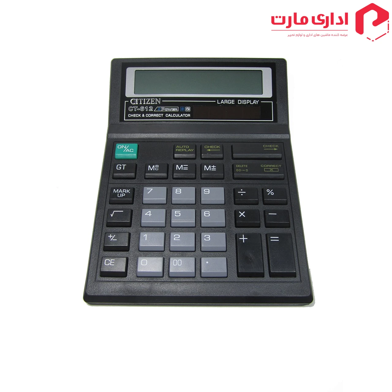 ماشین حساب CT-612 سیتیزن با صفحه‌نمایش ۱۲ رقمی است و برای تأمین برق مصرفی، این ماشین‌حساب از نوع باتری GP189 استفاده می کند. برای صرفه جویی در مصرف باتری از حالت خاموش خودکار بهره می برد. ماشین حساب CT-612دارای سه کلید حافظه است که سرعت عمل کاربر را بالای می برد. ابعاد ۱۴۰×۱۸۰ میلی متری و وزن ۲۵۰ گرمی این ماشین حساب را به محصولی جمع و جور تبدیل کرده است تا با حمل آن مشکلی نداشته باشید. تناسب ابعاد کلی دستگاه در مقایسه با کلیدها متناسب است.