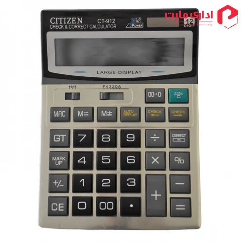 ماشین حساب مدل (CT-912) به ابعاد (۴۲×۱۶۰×۲۲۰) میلی متر و تنها با ۱۰۰ گرم وزن از سری محصولات با کیفیت و مفید برند معتبر (Citizen) به شمار می رود و از آنجایی که به صورت رومیزی طراحی شده برای مصارف حسابداری دفتری و اداری گزینه مناسبی محسوب می شود.