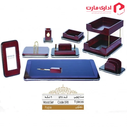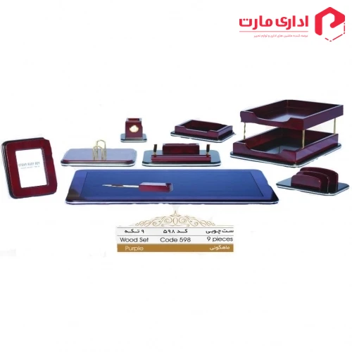 مجموع ست های رومیزی اداری که در انواع گوناگون در بازار وجود دارد برای سرعت بخشید و زیبا کردن میز کار شما به بازار عرضه شده است که ست رومیزی اداری کد ۵۹۸ چوبی یکی از این ست ها است این ست در ۹ تیکه از جنس چوب بسیار مرغوبی با کیفیت بالا ساخته شده است که دارای رنگ خاص ماهگونی است این ست با حجم خیلی کمی که دارد از میز کارشما حجم کمی را اشغال می کند و در خود تمام وسایل رومیزی شما را جای می دهد. رنگ ماهگونی که جزء رنگ های خاص می باشد در این ست استفاده شده است که میتوان محیطی خاص برای شما ایجاد کند تا شما از رنگ های تکراری خسته نشوید.این مجموعه دارای: جامدادی ایستاده ، پد رومیزی ، کازیه ، جای تقویم رومیزی ، جای قاب ، کارد باز کردن نامه ، جای کارت، جای یادداشت و جا قلمی(استند خودکار)می باشد.هر کدم از این اجزا می توانند به شما کمک کنند که بتوانید میز کار خود را مدیریت کنید.