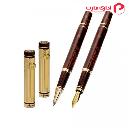 خودنویس و رواننویس ایپلمات مدل EMPEROR یک ست نوشتافزار لوکس و دستساز است که برای مدیران و علاقهمندان به نوشتافزارهای نفیس طراحی شده است. بدنه قلم های این ست از رزین طبیعی ساخته شده و در طرح نیمه طلایی قهوه ای با نوک خودنویس و قطعات طلای روکش شده با طلای ۱۴ عیار تولید و بفروش میرسد.