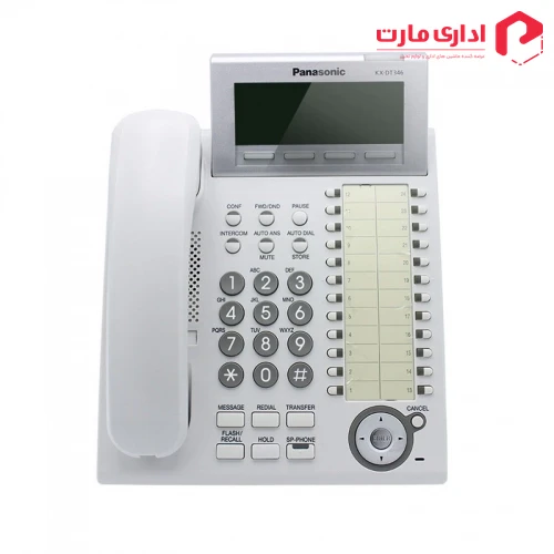 تلفن مدل (KX-DT346X) یکی از محصولات باکیفیت و پرکاربرد برند معتبر پاناسونیک به شمار میرود که ساختار ظاهری و امکانات فنی آن مبتنی بر نوع اتصال با سیم یوده و با توجه به بهره مندی از نمایشگر سه خطی به همراه Caller ID و دفترچه تلفن و همچنین صدای واضح و باکیفیت درواقع بهترین گزینه برای کاربری های اداری و در کل محیط های دفتری می باشد.از دیگر مشخصه های این محصول می توان به قایبلیت تنظیم کنتراست در ۴ سطح، تنظیم صدای گوشی یا هدست، تنطیم صدای اسپیکر، قابلیت شماره گیری سریع، کنفرانس تلفنی، قابلیت تنظیم ارتفاع تلفن در ۸ زاویه و غیره … بر روی این محصول ۲۸ کلید قابل برنامه ریزی CO تعبیه شده است با تلفن سانترال پاناسونیک قادر خواهید بود تماس ها را انتقال دهید یا تماس ورودی را متوقف و به بعدی جواب دهید و قابلیت HOLD که می توان تماس را پشت خط نگه داشت همچنین باید به ورودی هدفون این محصول اشاره کرد که KX-DT346X را به یک تلفن کاربردی تبدیل کرده است.در کنار تمام این قابلیت ها چیزی که جلب توجه می کند کیفیت بالای این محصول یعنی جنس بدنه پبلاستیک مقاوم به همراه کلید های پلاستیکی که در استفاده طولانی مدت تغییر رنگ نخواهند داد است، نمایشگر این محصول نیز بسیار کاربردی طراحی شده است به گونه ای که قابلیت تغییر کنتراست نسبت به روشنایی محیط و قابلیت نمایش ۲۴ کاراکتر را دارد وبه خاطر سایز مناسب نام مخاطبان را می توان به وضوح دید.