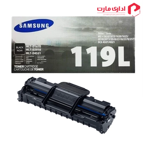 کارتریج لیزری MLT-D119L سامسونگ به گونه طراحی شده است که مناسب برای دستگاه های پرینتر لیزری سامسونگ میباشد. مزیت این کارتریج ان است که فابلیت استفاده در چند مدل پرینتر را دارد، دستگاه هایی مانند (Samsung ML-1610, ML-1610 R, ML-1615, ML-1620, ML-1625, ML-1625 R, ML-2010, ML-2010 P, ML-2010 PR, ML-2010 R, ML-2015, ML-2510, ML-2570, ML-2571 N, SCX-4321, SCX-4521 F, SCX-4521 FG, SCX-4521 FL, SCX-4521 FR) سازگار است که با قابلیت چاپ ۲۵۰۰ برگ بسیار مقرون به صرفه میباشد.خرید کارتریج لیزری MLT-D119L سامسونگ با قیمت مناسب در اداری مارت.