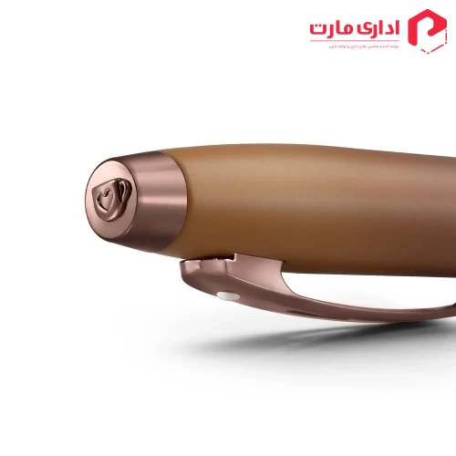 بدنه این خودنویس با طیف رنگی قهوهای مات پودری پوشیده شده و در قسمت فوقانی آن نماد فنجان قهوه و قلب حک شده است. این جزئیات کوچک، قلم را از سایر مدلهای سری ۱۰۰ متمایز میکند. علاوه بر آن، گیره و قطعات فلزی با آبکاری PVD قهوهای رنگ ساخته شدهاند که هم جذابیت بصری و هم ماندگاری بالایی دارند.