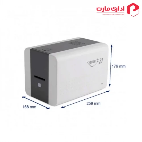 چاپگر کارت اسمارت ۲۱ با ساختاری به ابعاد (259x179x168) میلی متر و ۲.۷ کیلوگرم وزن قادر است انواع کارت های نوع (PVC، Composite PVC، PET) را بصورت تمام سطح یا لبه به لبه و با سرعت ۱۵۰ و ۶۰۰ کارت در ساعت به ترتیب در دو حالت سیاه و سفید و رنگی تحت رزولوشن (۳۰۰) dpi به چاپ برساند، ظرفیت مخزن ورودی آن نیز به ظرفیت ۱ کارت و بصورت ورودی دستی می باشد.