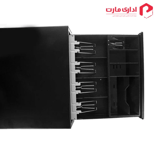 این دستگاه از نمای داخلی متشکل از تعداد ۶ خانه جهت جای گیری اسکناس و تعداد ۲ خانه برای نگهداری سکه و یک خانه جهت نگهداری چک بوده و علاوه بر آن دارای گیره هایی است که با نگه داشتن اسکناس ها در جای خود از پخش و بهم ریختگی آنها جلوگیری می کند، همچنین از دیگر ویژگی های این کشوی پول می توان به قفل امنیتی سه حالته اشاره کرد که حاوی سه حالت قفل، دستی و الکترونیکی است، بطوریکه با تنظیم این فقل در حالت الکترونیکی می توان دستگاه را به فیش پرینتر متصل کرد تا با صدور فاکتور فروش درب کشو بصورت اتوماتیک باز شود.